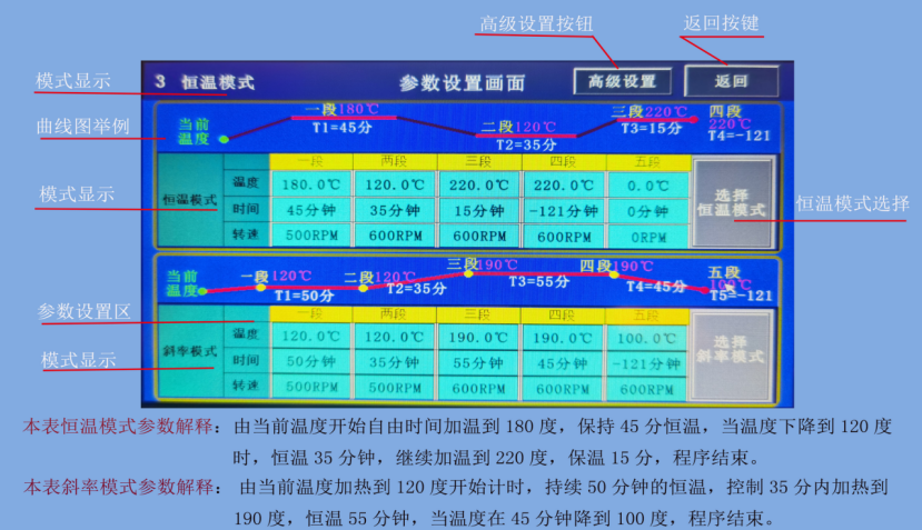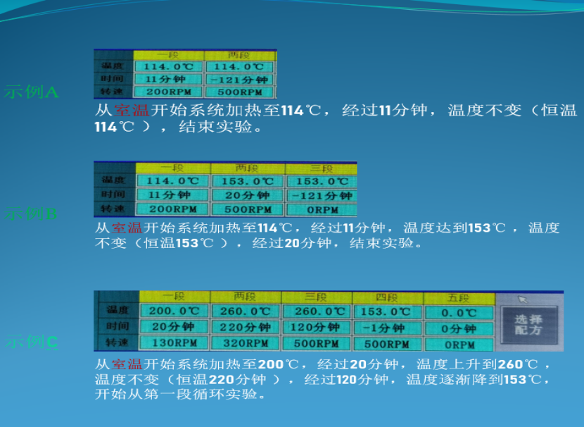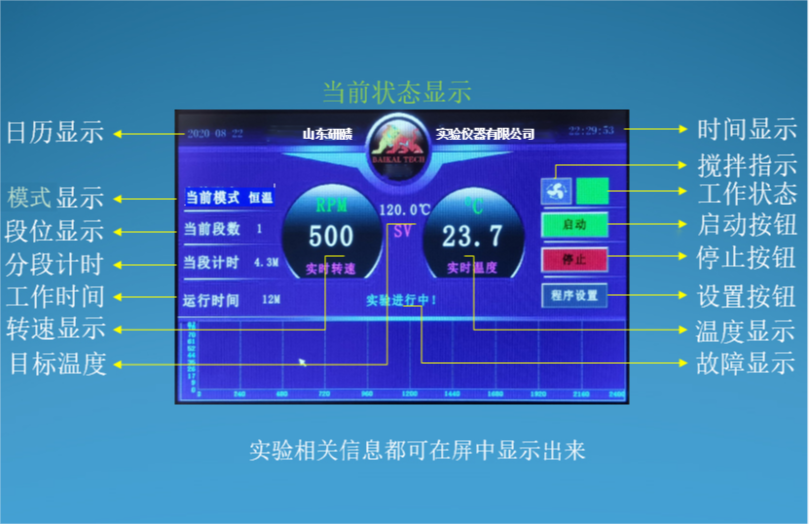 1.17 控制方式:軟件觸摸屏控制。程序控溫,數(shù)據(jù)采集顯示控制溫度、壓力、轉(zhuǎn)速、反應(yīng)計(jì)時等。U盤導(dǎo)出功能,可以導(dǎo)出溫度、壓力、轉(zhuǎn)速等歷史數(shù)據(jù)。溫度、壓力實(shí)時曲線顯示。含超溫超壓報(bào)警聯(lián)鎖,超溫自斷電保護(hù),超壓自動泄壓功能;
